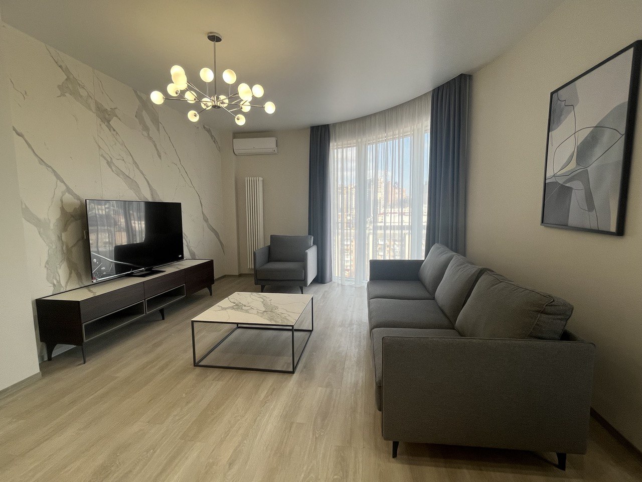 Modern apartment with designer renovation and panoramic windows in the new residential complex Atlantic Residences.