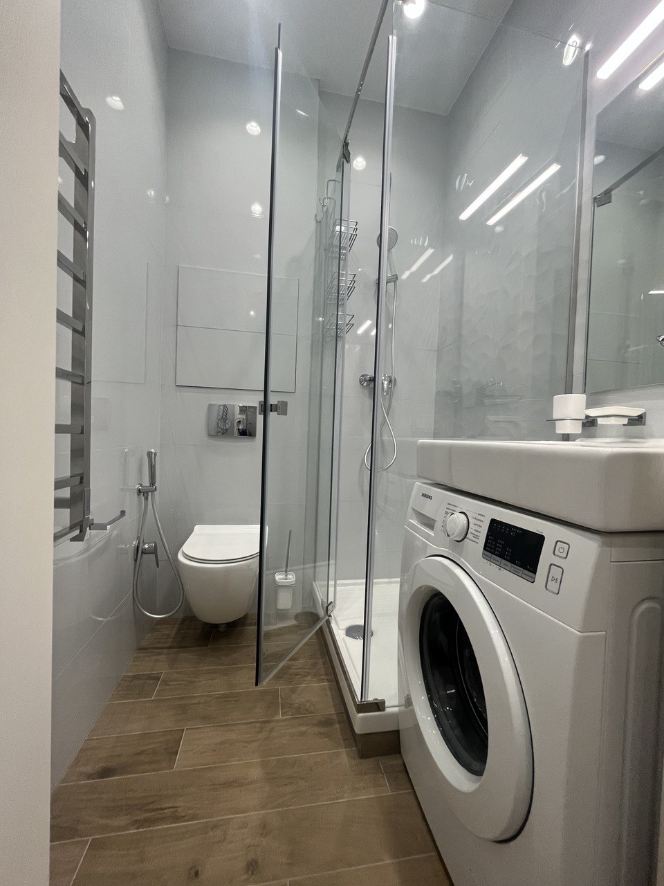 - Kitchen-living room, fully equipped with modern appliances, including oven and dishwasher.